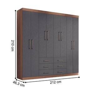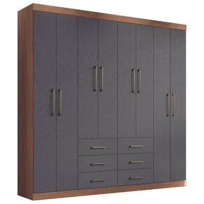 Guarda Roupa 8 Portas Casal Com Espelho Turim Jabotá Grafite - Cinza