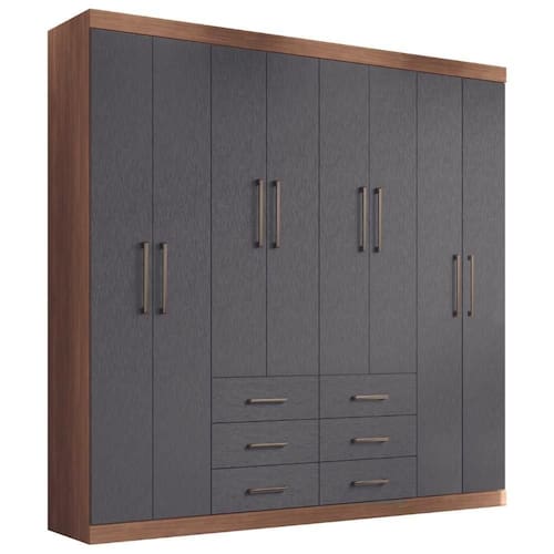 Guarda Roupa 8 Portas Casal Com Espelho Turim Jabotá Grafite