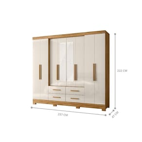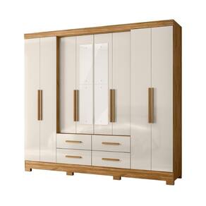 Feito em MDP, 8 portas, sendo portas de giro, 4 gavetas com corrediças telescópicas, porta centrais recuadas, espaço ele/ela, pés em pvc, puxadores em MDF, 8 prateleirapara centrais, acompanha espelho fixado nas portas.