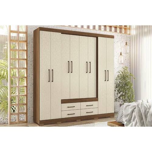 Guarda Roupa Casal 8 Portas e 4 Gavetas c/ Pés Nápoles Jatobá/Areia - Santos Andirá