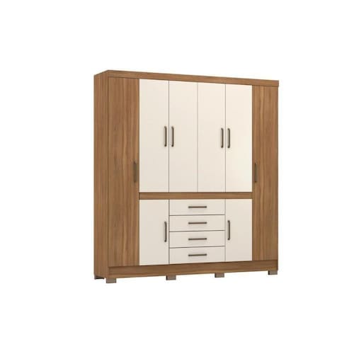 Guarda Roupa Casal 8 Portas e 4 Gavetas New Realce Amêndola/Off White - Demóbile Marca: Demóbile