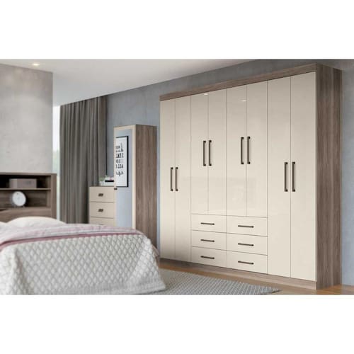 Guarda Roupa Casal 8 Portas e 6 Gavetas Liverpool Castanha/Off White - Santos Andirá