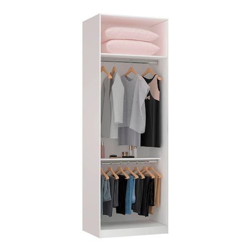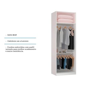 Guarda Roupa Closet Sem Porta 80,4cm 2 Cabideiros, Prateleira E Maleiro Prime Luciane Móveis Branco