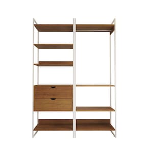 Guarda Roupa Aberto Industrial Casal 2 Módulos Amêndoa Cabideiro com Gavetas Ferro Branco - Marrom