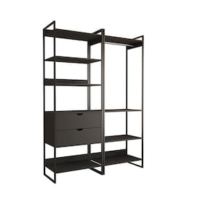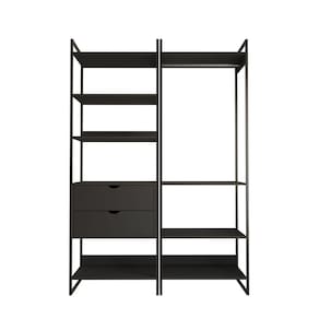 Guarda Roupa Aberto Industrial Casal 2 Módulos Preto Cabideiro com Gavetas Ferro Preto