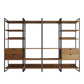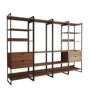 Guarda Roupa Aberto Industrial Casal Modulado Completo Amêndoa Cabideiro com Gavetas Ferro Preto - Marrom
