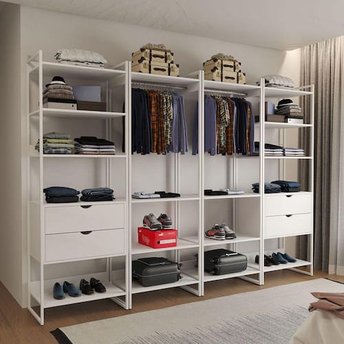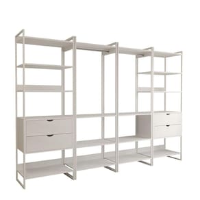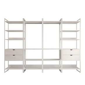Guarda Roupa Aberto Industrial Casal Modulado Completo Branco Cabideiro com Gavetas Ferro Branco