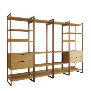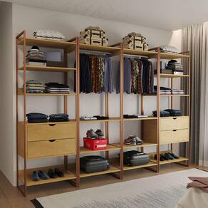 Guarda Roupa Aberto Industrial Casal Modulado Completo Canela Cabideiro com Gavetas Base Cobre - Marrom