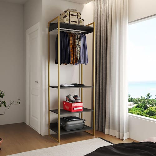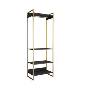 Guarda Roupa Aberto Industrial Modulado Solteiro Preto Cabideiro Base Dourada