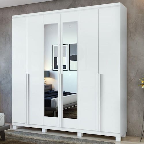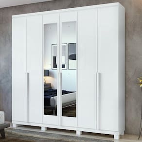 Guarda-roupa Alonzo 6 Portas E 4 Gavetas Com Espelho E Pés Branco Apresentamos o Guarda Roupa Alonzo com 6 Portas e 4 Gavetas com Espelho e Pes da Lopas dando muita elegancia ao ambiente. Com sua aparencia alongada, ele deixa o dormitorio com muito mais beleza e personalidade. Sua divisao interna permite acomodar itens de modo bem definido, com espaco para roupas, sapatos, acessorios, cosmeticos e o que mais for pertinente a sua rotina. Clique em COMPRAR e transforme seu Quarto!