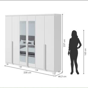 Especificacoes Tecnicas: Marca: Moveis Lopas Modelo: Alonzo Estrutura: MDF O Produto contem espelho: Sim Tipo de Porta: de Bater Quantidade de Portas: 06 Material das Dobradicas: Metalica Quantidade de Portas com Espelho: 02 Altura do Espelho: 90 cm Largura do Espelho: 30 cm Espessura do Espelho: 0,3 cm Quantidade de Gavetas: 04 Tipo de corredica: Telescopica Capacidade de Peso por Gaveta: 05 kg Quantidade de Cabideiros: 03 Quantidade de Prateleiras: 08 Peso Maximo por Prateleira: 05 kg Com Pes: Sim, 08