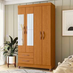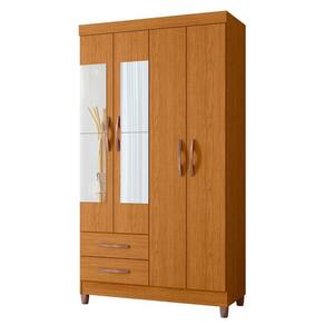 Produto: Guarda Roupa Âmbar 4 Portas com Espelho Cor: Cinamomo Puxadores Com Acabamento Metalizado Bronze Escala de Brilho: Fosco Altura (m): 1,89 Largura (m): 1,03 Profundidade (m): 0,47 Peso (kg): 55,75 Material: MDP Acabamento: Pintura Uv Material do Puxador: Abs Tipo de Cabideiro: Madeira Quantidade de Gavetas: 2 - Tipo de Corrediça: Metálicas Quantidade de Portas: 4 - Tipo de Porta: Bater Quantidade de Prateleiras: 3 Rodízios: Não Quantidade de Pés: 4 - Material dos Pés: ABS Necessita Montagem: SIM Espelho: Kit 4 Espelhos 0,46 X 0,20 M Cada Manutenção: Limpar Com Flanela Ou Pano Macio Seco, Não Utilizar Produtos Abrasivos, Desengordurantes, Álcool Ou Solvente. Não Expor O Produto Diretamente À Luz Solar E À Umidade. Garantia: 3 Meses