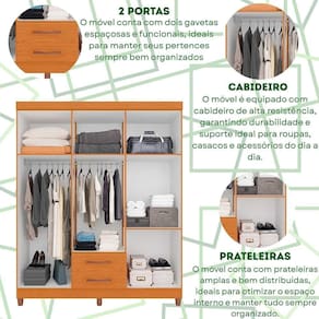 Guarda Roupa Ambar 6 Porta 2 Gavetas Quarto Cinamomo - Albatroz Com design moderno e estrutura robusta, o Guarda-Roupa Âmbar 6 Portas é a escolha ideal para quem busca espaço, praticidade e elegância no dormitó modelo conta com seis portas amplas que proporcionam excelente aproveitamento interno, puxadores com acabamento metalizado bronze e pés inclusos, que elevam o móvel e conferem um visual imponente ao ambiente.Internamente, possui amplo espaço com prateleiras bem distribuídas e cabideiros resistentes, ideais para roupas longas, dobradas e acessó acabamento refinado em pintura UV realça o contraste entre as cores e garante durabilidade, enquanto o design clean facilita a harmonização com diferentes estilos de decoraçãões:Altura: 189 cmLargura: 154 cmProfundidade: 47 cmObservações:- Seis portas com ótimo aproveitamento interno- Puxadores metalizados bronze de design sofisticado- Pés inclusos que garantem firmeza e estabilidade- Prateleiras e cabideiros bem distribuídos- Acabamento UV que valoriza as cores e aumenta a durabilidade