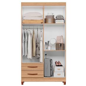 Com dimensoes de 103 cm de largura, 47 cm de profundidade e 189 cm de altura, este guarda-roupa e ideal para quartos solteiros. Possui duas gavetas e tres prateleiras, permitindo uma organizacao eficiente de roupas e acessorios. A estrutura em MDP garante durabilidade e resistencia, suportando ate 53,85 kg.