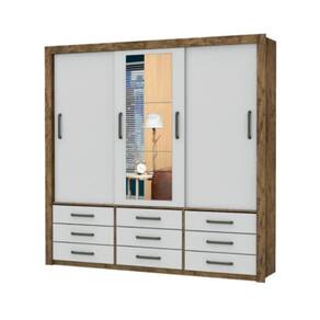 Guarda Roupa Anjos 3 Portas 9 Gavetas Com Espelho Gold Demolição/Branco - Carioca Móveis