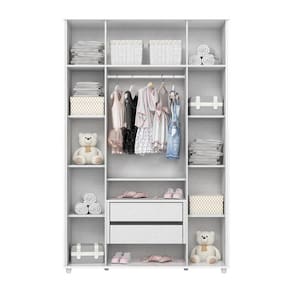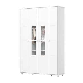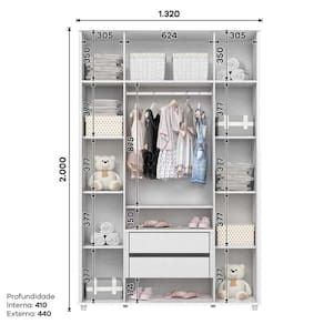 Dimensões: Altura (cm) 200 Largura (cm): 132 Profundidade (cm): 44 Peso (kg): 94 Quantidade de Portas: 4 Quantidade de Gavetas: 2 Material da Dobradiça: Metal Corrediça: Metal Puxador: Abs Cabideiro: Alumínio Pintura: UV/PU Marca: Henn