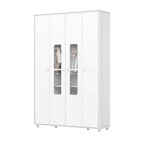 O(a) Roupeiro Aquarela 04 Portas Branco é produzido em Caixa: MDP 15mm Interno: MDP 15mm/12mm Frente: MDF 15mm Fundo: MDF 3mm. Seu revestimento/acabamento é: UV/PU