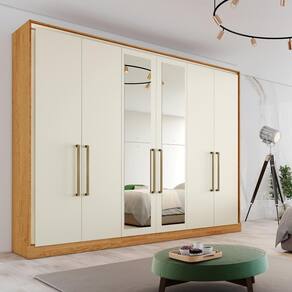 Guarda Roupa Argos 6 Portas Espelhado MDF - MadeMarcs - Bege