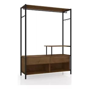 Transforme seu ambiente com este closet aberto que une design industrial e funcionalidade. A estrutura metálica preta garante resistência e modernidade, enquanto o acabamento em madeira demolição traz aconchego e sofisticação. Ideal para quem busca organização sem perder o estilo.