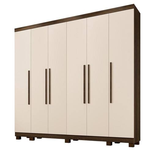 Guarda Roupa Atlanta 6 Portas 6 Gavetas 12 Prateleiras - Ben Imbuia Off O Guarda-Roupa Atlanta e produzido em chapa de 15 mm que garante robustez e maior vida util, com design moderno contem portas laterais independente. Conta com 6 portas, 12 prateleiras, 6 gavetas com corredicas telescopica e puxadores internos em pvc, cabideiro em aluminio, espaco para longos, pes inclusos no produto e puxadores amadeirados, otimo custo-beneficio. Sua fabricacao utiliza a linha mdp perffect, que une a sustentabilidade a inovacao tecnologica, proporcionando durabilidade e facil limpeza; inspirando sofisticacao ao mobiliario. Sua pintura uv conta com boa resistencia, e facil de limpar e e ecologicamente correto, pois utiliza madeira de reflorestamento, evitando o desmatamento. Caracteristicas: Material principal: MDP Espessura da chapa: 15 mm Escala de brilho: semibrilho Sistema de montagem: parafuso, cavilha e cantoneiras metalicas Quantidade de Portas: 06 Quantidade de Gavetas: 06 Quantidade de Prateleiras: 12