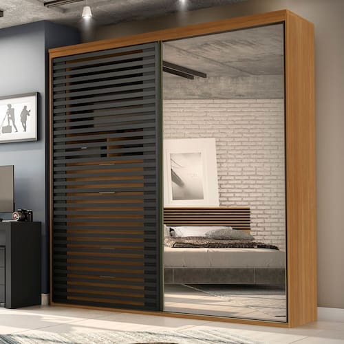 Você nunca viu nenhum Guarda Roupa como o Autes! Ele é super estiloso, com um design moderno com portas com detalhes ripados, seguindo tendências de móveis planejados, e divisões internas super completas para melhor organização das roupas .Roupeiro desenvolvido com material 100% em MDF e com acabamento touch com 7 camadas de tinta, agregando resistência e durabilidade ao seu móvel .Suas portas possuem design moderno, com linhas retas que conferem identidade visual ao móvel. Os puxadores e cabideiros são em alumínio, ou seja, não enferrujam e suportam maior peso. Gavetões enormes, com reforço, e corrediças reforçadas para guardar o máximo possível de roupas e objetos. Interno em MDF 15mm. Espaço interno otimizado, podendo ser utilizado com TV embutida de até 42 polegadas. Acabamento da Prateleira: Pintura Texturizada UV Escala de Brilho da Prateleira: Fosco Possui Cabideiros: Sim Acabamento da Gaveta: Pintura Texturizada UV Escala de Brilho da Gaveta: Fosco Material do Puxador da Gaveta: Alumínio Possui Organizador de Gaveta: Não Acabamento da Porta: Pintura Texturizada UV Escala de Brilho da Porta: Fosco Material do Puxador da Porta: Alumínio Altura do Espelho: 220 cm Ambiente Principal: Quarto codigo_ean: 7909903818602 Complexidade da Montagem: Média: pode ser montado por mais de uma pessoa e/ou necessite de maior conhecimento para montagem Cor: Freijó Cor do Produto: Freijó Cor Interna: Freijó Escala de Brilho: Fosco Espessura do Espelho: 3 mm Formato do Espelho: Retangular Gaveta com Chave: Não Itens Inclusos: 1 Roupeiro e Manual de montagem Largura do Espelho: 100 cm Linha ou Coleção: Autes Manual de Montagem e Instalação: https://product-hub-prd.madeiramadeira.com.br/924555/documents/71d52968-3f1b-4845-8f4a-d198be82b5ed215562555981721397206271.pdf Material da Gaveta: MDF Material da Porta: MDF Material da Prateleira: MDF Material Principal: MDF modular: Não Necessita Montagem: Sim Origem do Produto: Nacional Peso: 206 kg Peso Máximo por Gaveta: 15 kg Peso Máximo por Prateleira: 15 kg Possui Espaço para Vestidos Longos: Sim Possui Espelho: Sim Possui Espelho Interno: Não Possui iluminação: Não Possui Painel de TV: Sim Possui Pés: Não Possui Portas: Sim Possui Prateleiras: Sim Produto Montado: Sim Quantidade de Espelho: 01 Quantidade de Gavetas: 05 Gavetas Quantidade de Prateleiras: 03 Prateleiras Recomendações de Uso, Manutenção e Limpeza: Utilizar pano seco. Sistema de Montagem: Parafusos, cavilhas, minifix. Tipo de Corrediça da Gaveta: Metálica Telescópica Tipo de Dobradiça/Corrediça da Porta: Telescópica Tipo de Fixação do Espelho: Molduras Tipo de Gaveta: Interna Tipo de Guarda-Roupa: Solteiro Tipo de Puxador da Gaveta: Externo Tipo de Puxador da Porta: Embutido
