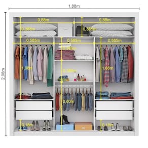 Guarda Roupa Bahia 3 Portas 4 Gavetas Carioca Móveis Branco Guarda Roupa 3 Portas de Correr Bahia com 1,88 m de largura, 2,08 m de altura e 0,54 m de profundidade. Possui em seu interior 4 gavetas e 4 prateleiras para guardar suas roupas de cama, banho e o que mais for preciso, com a elegancia e qualidade. Caracteristicas: Marca: Carioca Moveis Modelo: Bahia Portas: 3 Gavetas: 4 Prateleiras: 4