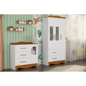 Guarda Roupa Bebê Clara c/ 3 Portas e 2 Gavetas Branco Brilho - Peroba Marca: Móveis Peroba