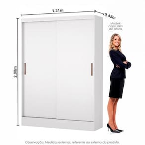Guarda-roupa Belem 2 Portas De Correr 2 Gavetas Branco O Guarda-Roupa Belem 2 Portas 2 gavetas e ideal para otimizar o espaco do ambiente e deixar tudo organizado. Com Puxador em Madeira, possui 3 prateleiras interna, 2 portas correr, 2 gavetas internas com corredicas metalicas alem de amplo espaco para os cabideiros. Possui pintura UV, que oferece ao produto resistencia e durabilidade. Dimensoes do Produto Montado: Altura: 200 cm Largura: 131cm Profundidade: 45 cm