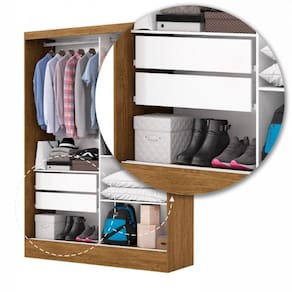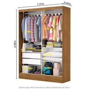 Guarda-roupa Belem 2 Portas De Correr 2 Gavetas Com Espelho Cinamomo Branco O Guarda-Roupa Belem 2 Portas com espelho 2 gavetas e ideal para otimizar o espaco do ambiente e deixar tudo organizado. Com Puxador em Madeira, possui 3 prateleiras interna, 2 portas correr, 2 gavetas internas com corredicas metalicas alem de amplo espaco para os cabideiros. Possui pintura UV, que oferece ao produto resistencia e durabilidade. Dimensoes do Produto Montado: Altura: 200cm Largura: 131cm Profundidade: 45cm