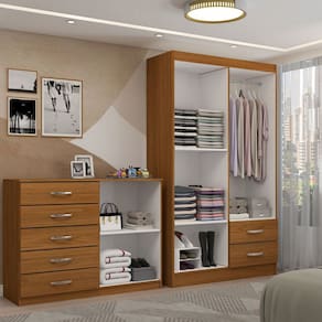 - Acompanha: Guarda-Roupa + Cômoda + Kit Ferragem + Manual de Montagem