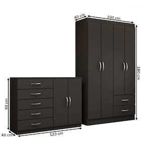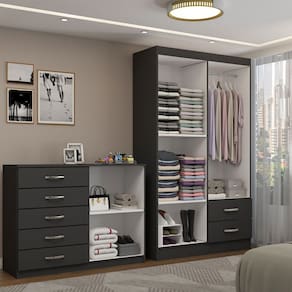 O(a) Guarda-Roupa Bella 4 Portas 2 Gavetas com Cômoda 2 Portas 5 Gavetas Preto - Loja é produzido em MDP na escala de brilho Fosco, e possui um grau de dificuldade de montagem: Médio.