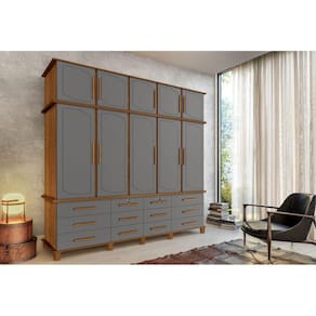 Guarda Roupas Casal Berlim 05 Portas 12 Gavetas com Maleiro Carvalho New / Cinza Luapa Móveis