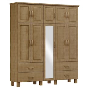 Características: Estrutura 100% em Madeira Maciça Pintura Acetinada Verniz PU e UV Amplo Espaço para Armazenamento Montagem Bipartida 04 Gavetas com Corrediças Metálicas 10 Portas com Dobradiças Metálicas Cabideiros em Alumínio (Peso Máximo Suportado 08kg Distribuídos); Peso Máximo Suportado pelas Gavetas 05kg Distribuídos Peso Máximo Suportado pelas Prateleiras 08kg Distribuídos