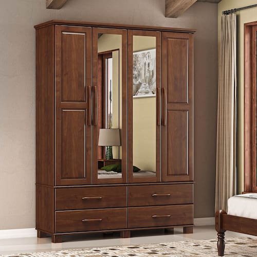 Guarda-Roupa Bipartido 4 Portas 4 Gavetas Ouro Café Madeira Pinus - Finestra