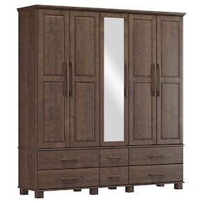 Características: Estrutura 100% em Madeira Maciça de Pinus Pintura Acetinada Verniz PU e UV Amplo espaço para armazenamento 06 Gavetas com Corrediças Telescópicas 05 Portas Dobradiças com amortecimento Porta Central Possue Espelho Cabideiro em alumínio Prateleiras Internas Puxadores e Pés em Madeira Maciça Peso Máximo Suportado pelas Gavetas 05kg Distribuídos Peso Máximo Suportado pelas Prateleiras 10kg Distribuídos Peso Máximo Suportado pelo Cabideiro 08kg Distribuídos Isolamento de Peças com Manta de Polietileno Expandido (Isomanta)