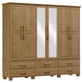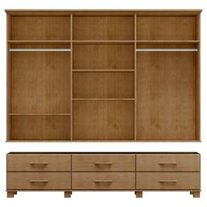 Guarda-Roupa Bipartido 6 Portas 6 Gavetas Ouro Freijó Madeira Pinus - Finestra