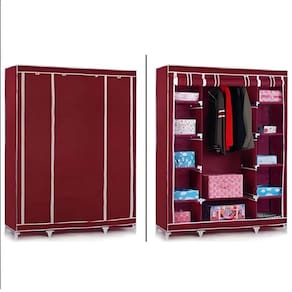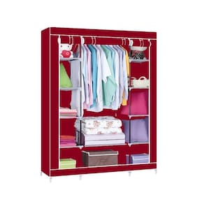 Guarda Roupa Cabideiro Portatil Prateleiras Dobravel Armario Arara Grande Organizador Vermelho