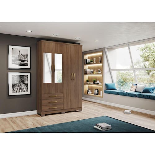 Guarda-Roupa Caju 04 Pts. C/ Espelho Castanho - Henn - Marrom