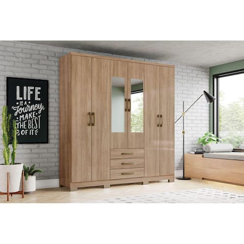 O Guarda-roupa Caju oferece vários diferenciais em beleza, estilo e espaço. Para organizar tudo o que você precisa, conta com uma divisão otimizada de prateleiras e cabideiros resistentes de madeira revestido. Ainda na parte externa, possui 03 gavetas com corrediças metálicas. Diferenciais; Acompanha espelho Cabideiro de madeira revestido Gavetas com corrediças metálicas Pés em ABS Puxadores em ABS Medidas: A: 2005 x L: 1805 x P: 465 mm Grantia: 90 dias. Recomendação de limpeza: Usa pano levemente umedecido com água, seguido por pano seco. Evitar exposição ao sol, para aumentar a durabilidade da cor do tecido. Não usar escova e/ou produtos abrasivos. Montagem: Montagem, desmontagem e outras instalações serão de responsabilidade do cliente. Não nos responsabilizamos, no ato da entrega, por subir escadas/elevadores ou pelo transporte por guincho em apartamentos. Eventuais despesas são de responsabilidade do comprador; Observações importantes: A tonalidade da cor do produto pode variar de acordo com a sua tela, a iluminação do ambiente ou sua percepção visual Lembrando que são fotos ilustrativas tratadas em estúdios podendo haver pequena diferença nas cores A montagem será de responsabilidade do comprador; Não nos responsabilizamos, no ato da entrega, por subir escadas/elevadores ou transporte por guincho em apartamentos. Eventuais despesas são de responsabilidade do comprador; Confira as dimensões deste produto e certifique-se de que passará normalmente por supostos elevadores, portas, escadas e/ou corredores de sua residência; Para mais informações, acesse nossa Central de Atendimento. Marca: LM DECOR