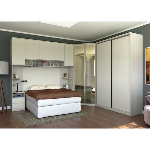 Ambiente Composto por: 1-Cabeceira Luciane Casal Prime Plus Painel 145 cm 1-Guarda-Roupa Solteiro Luciane 2 Portas de Correr 3 Gavetas Prime Plus 160 cm 1-Guarda-Roupa Solteiro Luciane Canto Closet Prime Plus 2 Portas Alumínio com Vidro Reflecta 1-Maleiro Ponte Casal Luciane 3 Portas Prime Plus 145 cm 1-Mesa de Cabeceira Direito 1 Porta 2 Gavetas Prime Plus Luciane 1-Mesa de Cabeceira Esquerdo 1 Porta 2 Gavetas Prime Plus Luciane 1-Nicho Aéreo para Ponte Modulado 145cm Prime Plus Luciane Móveis