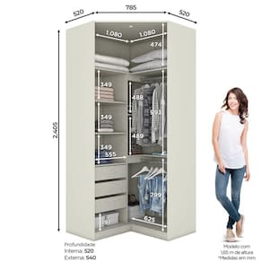 O Canto Closet Seletto tem duas portas com espelho, dois cabideiros, e três gavetas internas, o módulo une design e funcionalidade. A Linha Seletto foi desenvolvida para possibilitar várias opções de montagens e atender diversas necessidades de espaço, oferecendo mais praticidade no seu dia a dia, é compacto e bem planejado, perfeito para a organização, deixando o ambiente ainda mais aconchegante e sofisticado. Tem 240,5 cm de altura, 109,5 cm de largura e 109,5 cm de profundidade. Acabamento da Gaveta: Pintura Texturizada UV Acabamento da Porta: Pintura Texturizada UV Acabamento da Prateleira: Pintura Texturizada UV Acabamento dos Pés: Pintura Texturizada UV Altura dos Pés: 5 Ambiente Principal: Quarto Complexidade da Montagem: Alta: deve ser montado por um montador especializado Composição: MDF/MDP Cor: Areia HP Cor do Produto: Areia HP Cor Interna: Cinza Escala de Brilho: Fosco Espessura do Espelho: 3 Formato do Espelho: Retangular Gaveta com Chave: Não Itens Inclusos: 1 Canto Closet, Kit Ferragens e Manual de Montagem Linha ou Coleção: Seletto Manual de Montagem e Instalação: https://cdn2.madeiramadeira.com.br/atributo/henn-briz-quarto-adulto/1030533-mc06-canto-closet-seletto-02-portas-c-espelho.pdf Material da Gaveta: MDF/MDP Material da Porta: MDF Material da Prateleira: MDP Material dos Pés: MDP Material Principal: MDP Necessita Montagem: Sim O Módulo Pode ser utilizado individualmente: Sim Origem do Produto: Nacional Pés Reguláveis: Não Peso: 119 Peso Máximo por Gaveta: 3 Peso Máximo por Prateleira: 8 Possui Espelho: Sim Possui Pés: Rodapé Possui Portas: 02 Possui Prateleiras: 09 Possui Rodízio: Não Recomendações de Uso, Manutenção e Limpeza: Para limpeza do seu móvel, use uma flanela seca ou umedecida. N'ao utilize produtos químicos que possam danificar o produto.. Sapatas Niveladoras: Sim Sistema de Montagem: Parafusos e Cavilhas Tamanho do Espelho (A x L): 232 x 39,1 Tipo de Corrediça da Gaveta: Metálica Simples Tipo de Dobradiça/Corrediça da Porta: Metálica Tipo de Fixação do Espelho: Molduras Tipo de Módulo: Closet Tipo de Puxador da Gaveta: Embutido Tipo de Puxador da Porta: Externo Ean: 7909903159538