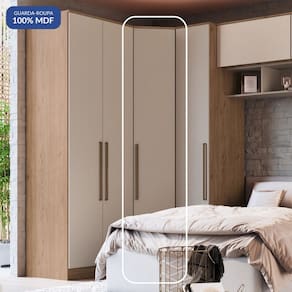 O módulo Canto Oblíquo da linha Requinte 100%MDF oferece um aproveitamento total do ambiente. Seu design funcional permite otimizar o seu espaço com prateleiras e cabideiros, garantindo organização e fácil acesso. Equipado com dobradiças com amortecedor proporcionando fechamento suave e silencioso, aumentando a durabilidade e o conforto no uso diário.