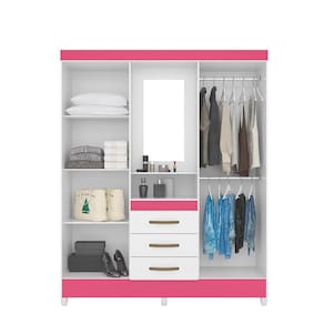 O Guarda roupas Capri é um estilo capelinha - com 4 portas e 3 gavetas ele é ideal para quem precisa de organização e dispõe de pouco espaço - uma interna completa com prateleiras e bastões cabideiros, ele consegue acomodar bem todos os seu pertences - ainda na parte central ele oferece um espaço para aquele momento de cuidar da beleza.