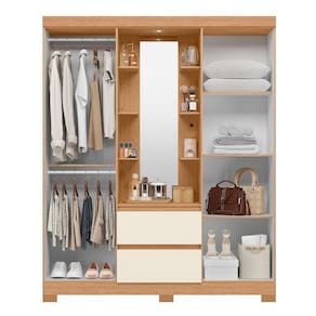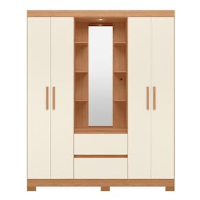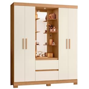 O Guarda Roupa Olímpia é um clássico capelinha, mas com design invador e com um toque de modernidade. Possui um camarim central com mini prateleiras funcionais , um amplo espelho iluminado por LED. Sua estrutura interna é bem dividida, conta com prateleiras , cabideiros em alumínio, suas gavetas externas possui corrediças telescópicas para facilitar a abertura das mesmas e garantir maior resistência. Suas portas possuem puxadores em MDF revestidos. Esse móvel agrega beleza ao ambiente. Acabamento da Prateleira: Pintura UV Escala de Brilho da Prateleira: Fosco Possui Cabideiros: 02 Acabamento da Gaveta: Pintura UV Escala de Brilho da Gaveta: Semi-Fosco Material do Puxador da Gaveta: MDF Possui Organizador de Gaveta: Não Acabamento da Porta: Pintura UV Escala de Brilho da Porta: Brilhante Material do Puxador da Porta: MDF Altura do Espelho: 123 cm Altura dos Pés: 5 cm Altura Máxima dos Pés: 5.0000 Ambiente Principal: Quarto codigo_ean: 7900288050212 Complexidade da Montagem: Alta: deve ser montado por um montador especializado Cor: Freijó/Off White Cor do Produto: Freijó/Off White Cor do Puxador: Cinamomo Cor Interna: Branco Escala de Brilho: Semi-Brilho Espessura da Estrutura (mm): 12 mm Espessura das Portas (mm): 12 mm Espessura das Prateleiras (mm): 12 mm Espessura do Espelho: 3 mm Espessura do Fundo (mm): 3 mm Espessura do Fundo das Gavetas (mm): 3 mm Fita Integrada: Sim Formato do Espelho: Retangular Gaveta com Chave: Não Guarda-Roupa Suporta Até (kg): 54 kg Itens Inclusos: 1 Guarda Roupa + 1 Manual de Montagem + 1 Kit de Ferragem Largura do Espelho: 30 cm Linha ou Coleção: Albatroz Manual de Montagem e Instalação: https://product-hub-prd.madeiramadeira.com.br/975033/documents/b526cf8c-844c-4ecc-9f26-edb06f12d840263938167517374012492691.pdf Marca: Albatroz Móveis Material da Gaveta: MDP Material da Porta: MDP Material da Prateleira: MDP Material dos Pés: ABS Material Principal: MDP modular: Não Necessita Montagem: Sim Nicho com Cabideiro: Sim Origem do Produto: Nacional Peso: 87,8 kg Peso Máximo por Gaveta: 5 kg Peso Máximo por Prateleira: 5 kg Porta Janelada: Não Possui Calceiros: Não Possui Capelinha: Sim Possui Espaço para Vestidos Longos: Não Possui Espelho: Sim Possui Espelho Interno: Não Possui Ganchos: Não Possui iluminação: Sim Possui Painel de TV: Não Possui Penteadeira: Sim Possui Pés: 06 Possui Portas: Sim Possui Prateleiras: Sim Possui Sapateira: Não Produto Montado: Sim Quantidade de Cabideiros: 02 Cabideiros Quantidade de Espelho: 01 Quantidade de Gavetas: 02 Gavetas Quantidade de Portas com Espelhos: Nenhuma Quantidade de Prateleiras: 04 Prateleiras Recomendações de Uso, Manutenção e Limpeza: Limpar com flanela ou pano macio seco, não utilizar produtos abrasivos, desengordurantes, álcool ou solvente. Não expor o produto diretamente á luz solar e á umidade. Sistema de Montagem: Parafusos, cavilhas e minifix Suporta Até (kg): 54 kg Tipo de Corrediça da Gaveta: Metálica Telescópica Tipo de Dobradiça/Corrediça da Porta: Metálica Tipo de Fixação do Espelho: Fita Dupla Face Tipo de Gaveta: Externa Tipo de Guarda-Roupa: Casal Tipo de Puxador da Gaveta: Não Possui Tipo de Puxador da Porta: Externo