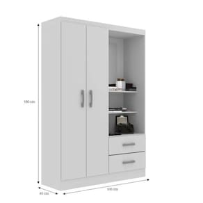 Material Principal: MDP com acabamento fosco em lacaPuxadores: Plástico resistenteCorrediças das Gavetas: Plásticas, garantindo suavidade no manuseioDobradiças das Portas: Alumínio, que proporciona maior durabilidadeCaracterísticas AdicionaisNúmero de Portas: 2Número de Gavetas: 2Número de Prateleiras: 2 internas e 2 externasCabideiro: SimAcabamento: FoscoMontagem: Simples, com parafusos e Minifix. A montagem é por conta do compradorGarantia: 3 meses contra de fabricação