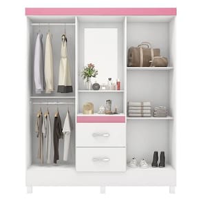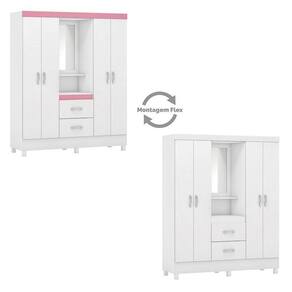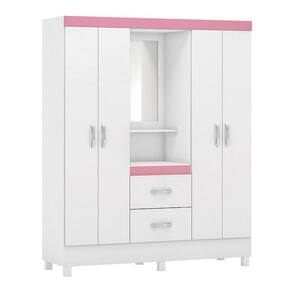 Tipo de Guarda Roupa: Solteiro | Tonalidade: Multicolorido | Quantidade de Portas: 4 | Fabricante: Demóbile Cor: Branco/Rosa