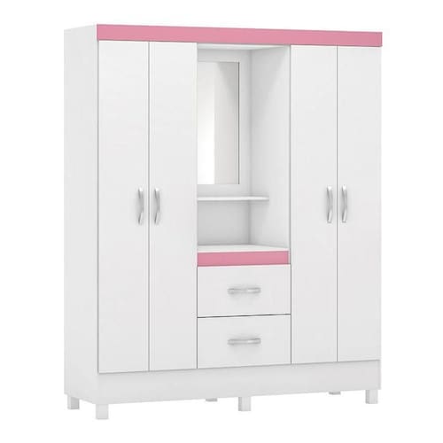 Guarda Roupa Capelinha Lord 4 Portas Branco/rosa Com Espelho - Demóbile Branco/rosa