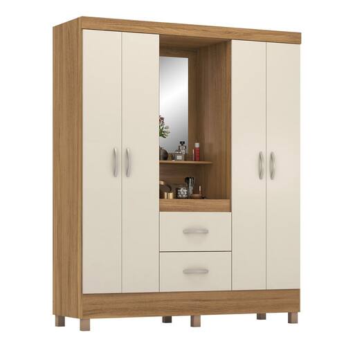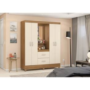 Produzido em MDP com acabamento em pintura UV, o móvel conta com cabideiro e calceiro metálicos, que auxiliam na organização das roupas. As gavetas possuem corrediças metálicas, garantindo melhor funcionamento na abertura e fechamento. O modelo também dispõe de espelho integrado, facilitando o uso diário.