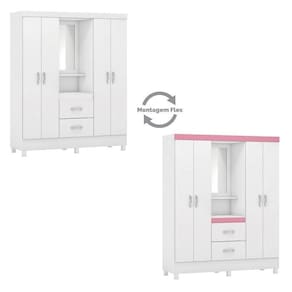Tipo de Guarda Roupa: Solteiro | Tonalidade: Multicolorido | Quantidade de Portas: 4 | Fabricante: Demóbile Cor: Branco