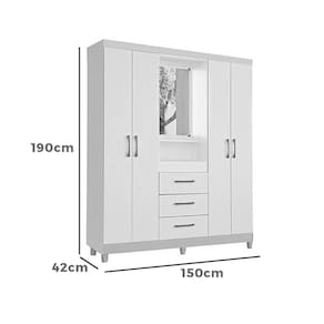 Guarda Roupa Capelinha Lyon Solteiro com Espelho 4 Portas 3 Gavetas Rud Rack Você está em busca de um guarda-roupa que vai te deixar impressionado? O Guarda Roupa Capelinha Lyon Solteiro com Espelho 4 Portas 3 Gavetas Rud Rack é a escolha perfeita para o seu quarto! Com um design moderno e funcional, este guarda-roupa vai dar um toque de elegância ao seu espaço. As 4 portas e 3 gavetas oferecem amplo espaço para organizar suas roupas, sapatos, e acessórios, mantendo tudo bem arrumado e fácil de encontrar. Além disso, o espelho é perfeito para dar aquela conferida no visual antes de sair de casa. Então, se você quer adicionar um toque de estilo e praticidade ao seu quarto, não deixe de conferir o Guarda Roupa Capelinha Lyon Solteiro com Espelho 4 Portas 3 Gavetas Rud Rack. Seja para guardar suas roupas ou para dar aquele up na decoração, este guarda-roupa é a escolha perfeita para você! MEDIDAS Altura 190 cm Largura 150 cm Profundidade 42 cm CARACTERÍSTICAS Modelo Guarda Roupa Capelinha Lyon Tipo de Produto Guarda Roupa Solteiro Garantia 3 meses Acabamento Pintura UV Ambiente Quarto Estrutura MDP/MDF Quantidade de Portas 04 Quantidade de Gavetas 03 Tipo de Porta Bater Material Puxadores Alumínio Material Pés PVC Material Cabideiros Madeira Revestidos Necessita Montagem Sim Acompanha Manual de Instalação Sim INFORMAÇÕES IMPORTANTES Objetos decorativos que porventura apareçam na foto, não acompanham o produto. Não nos responsabilizamos pela montagem/instalação dos produtos. Montagens, desmontagens e instalações são responsabilidades do cliente. Indicamos que contrate uma empresa de montagem ou um montador de sua confiança. Além disso, favor verificar se os pés e acessórios estão dentro do forro inferior do produto. Em suma, todas as informações divulgadas sobre o produto são de responsabilidade do Fabricante. As cores do produto podem variar de acordo com o seu monitor, a iluminação do ambiente em que você está e até mesmo a sua percepção visual. Além da cor, pequenos detalhes e acabamentos podem não ficar evidentes na foto, por isso as imagens são meramente ilustrativas